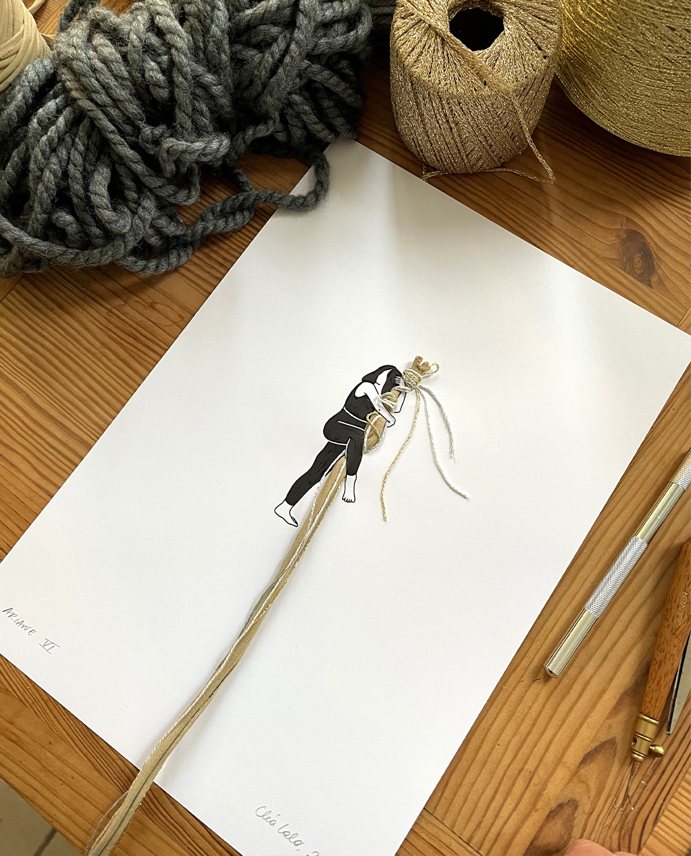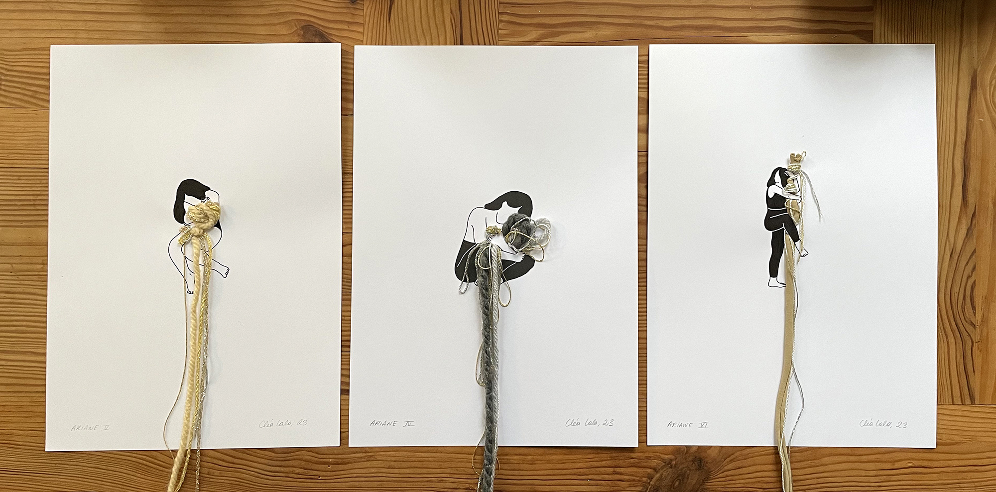 Titre ARIANE Série Le Corps Et l’Esprit Concept Série de dessins et compositions autour de l'expression "le fil d'Ariane", métaphore empruntée à la mythologie grecque pour désigner ce qui sert de guide et permet de se tirer d'une situation difficile...