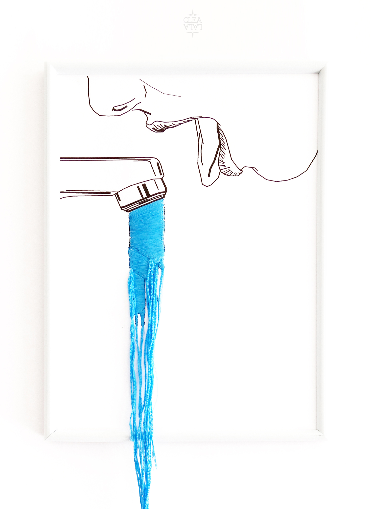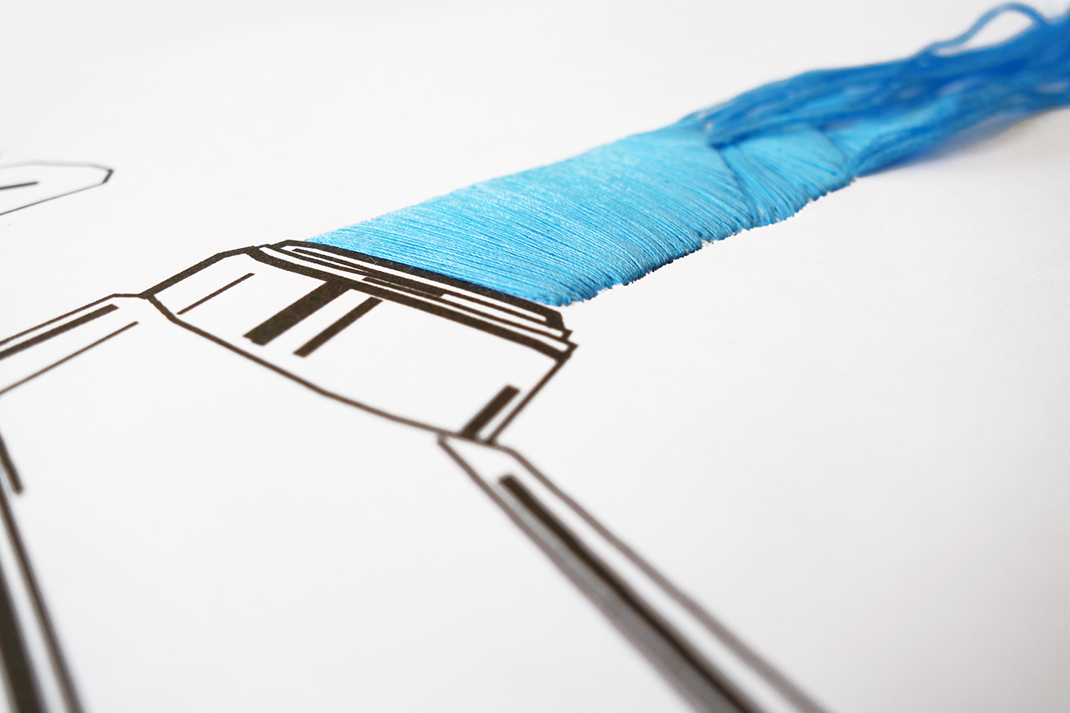 Impression jet d'encre noir, fils et broderie sur papier bristol blanc