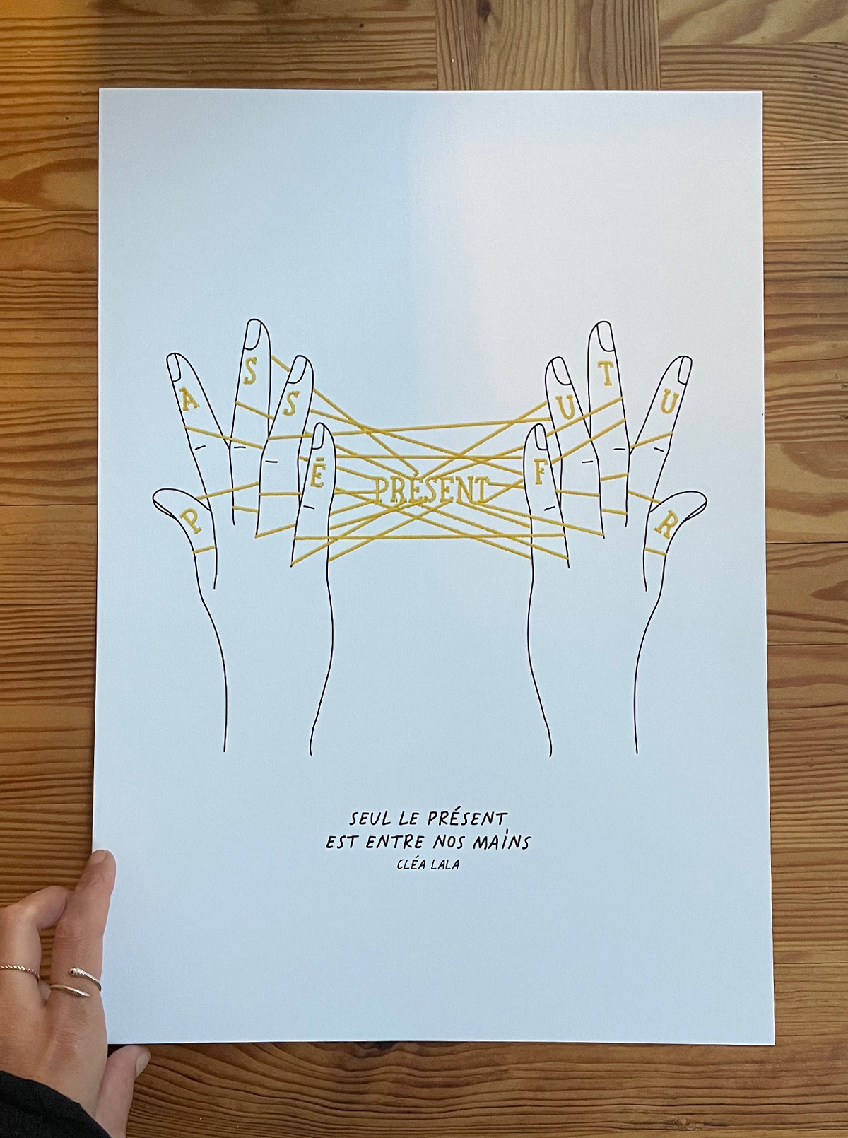 Titre (THE) PRESENT Concept Seul le présent est entre mes mains. Projet Personnel Production Papier Année 2022 Thème Société, Temps, Mental Création Concept, Broderie, Illustration, Dessin, Typographie