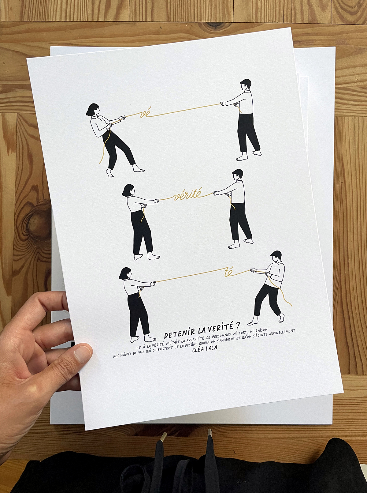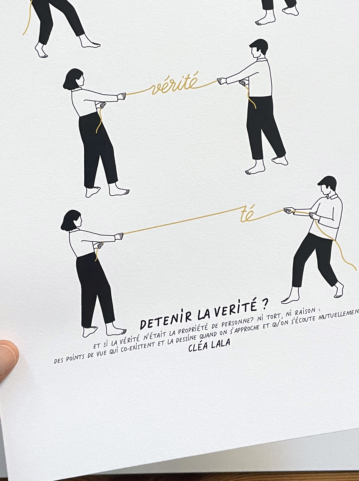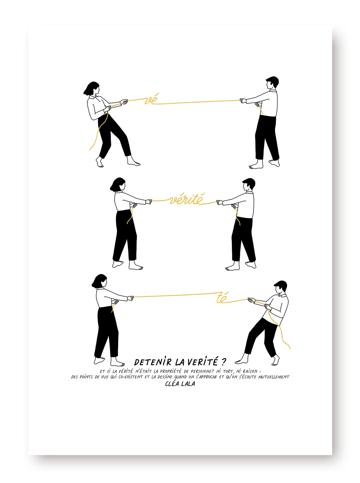 Concept Détenir la vérité ? Et si la vérité n’était la propriété de personne? et si il n’existait pas de monopole de la vérité? Ni tienne, ni mienne, Ni tort, ni raison, Ni d’accord, ni pas d’accord. Simplement 2 visions qui co-existent, qui ne la dessinerait que quand on s’approcherait et qu’on s’écouterait réciproquement.